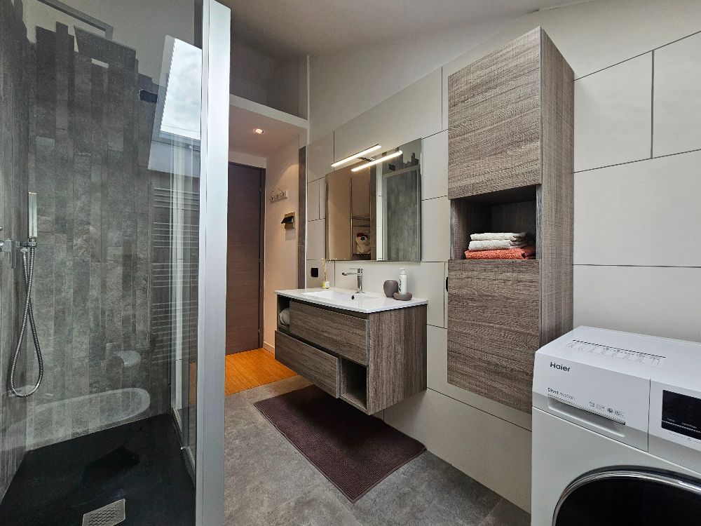 Composizione dell’immobile: -Ingresso con soggiorno modulabile e funzionale -Zona pranzo impreziosita da camino -Cucina su misura completamente attrezzata -Balcone panoramico -Vano adibito a camera matrimoniale -Bagno moderno con doppio piatto doccia.