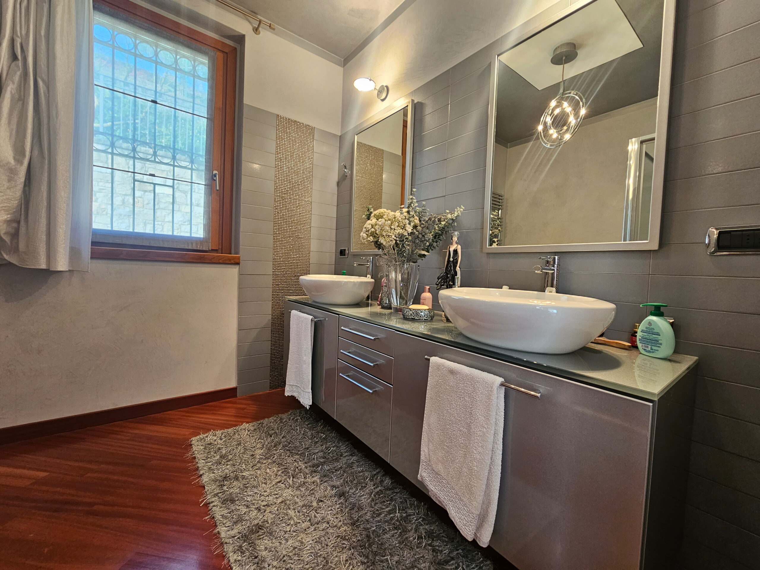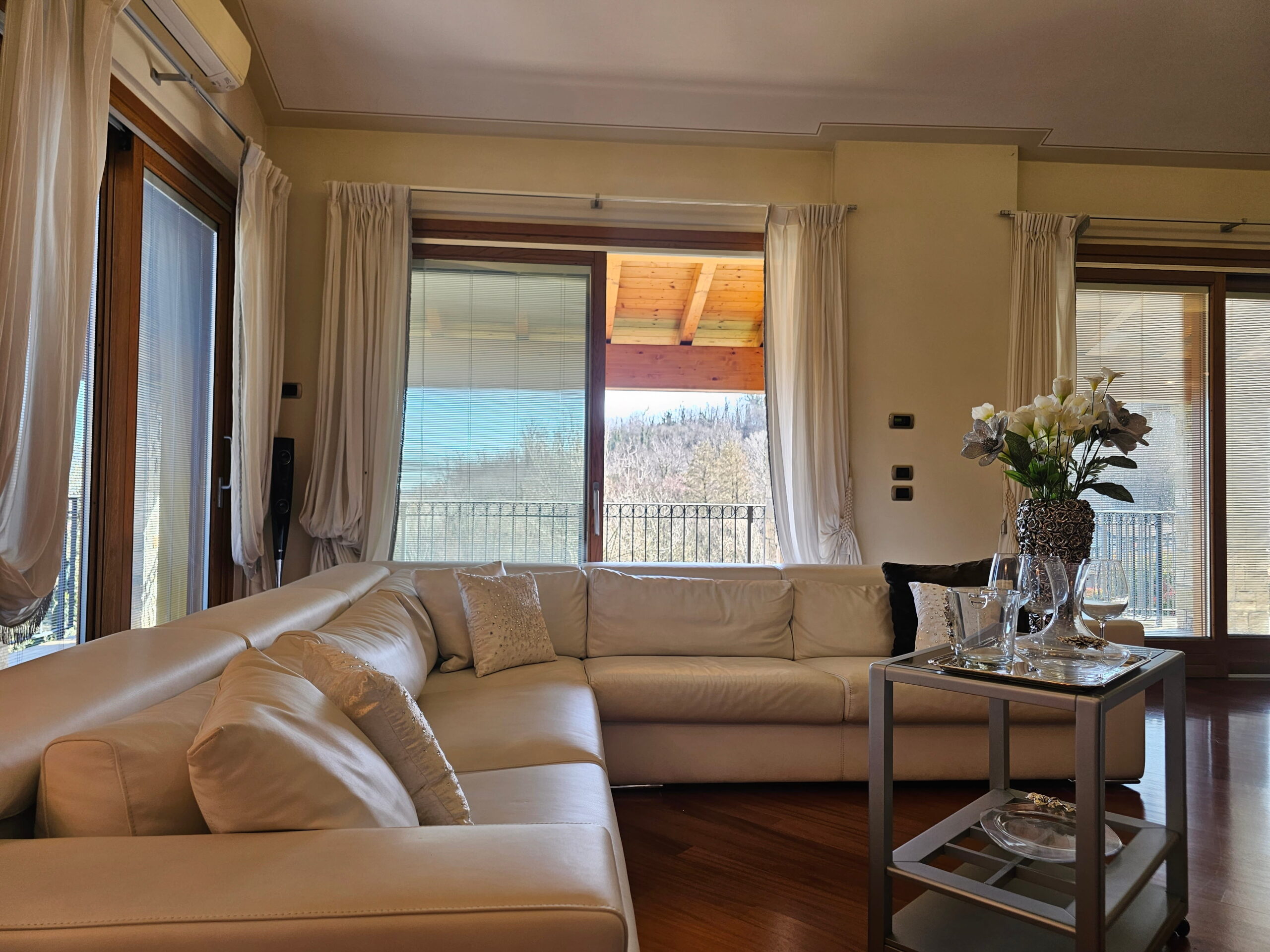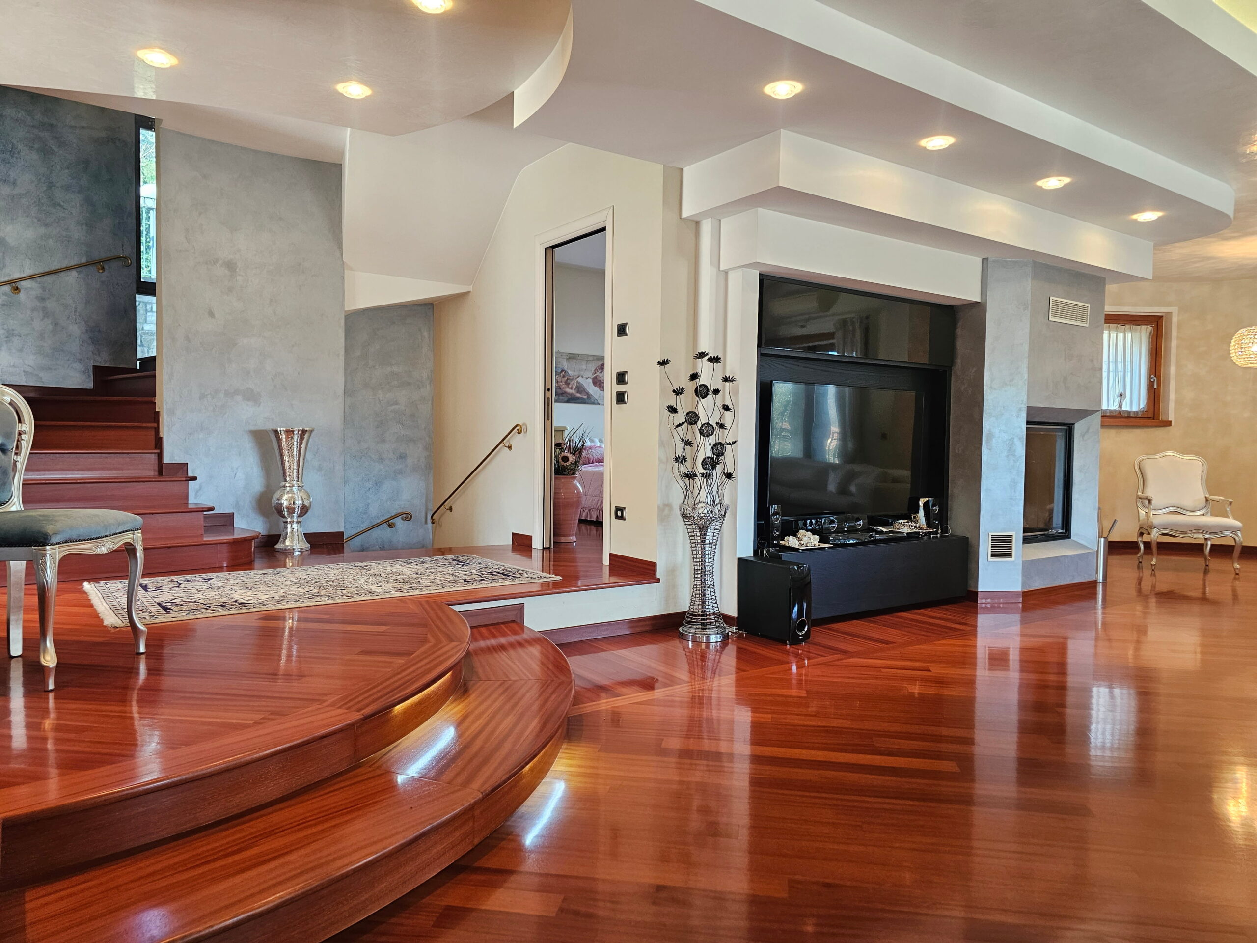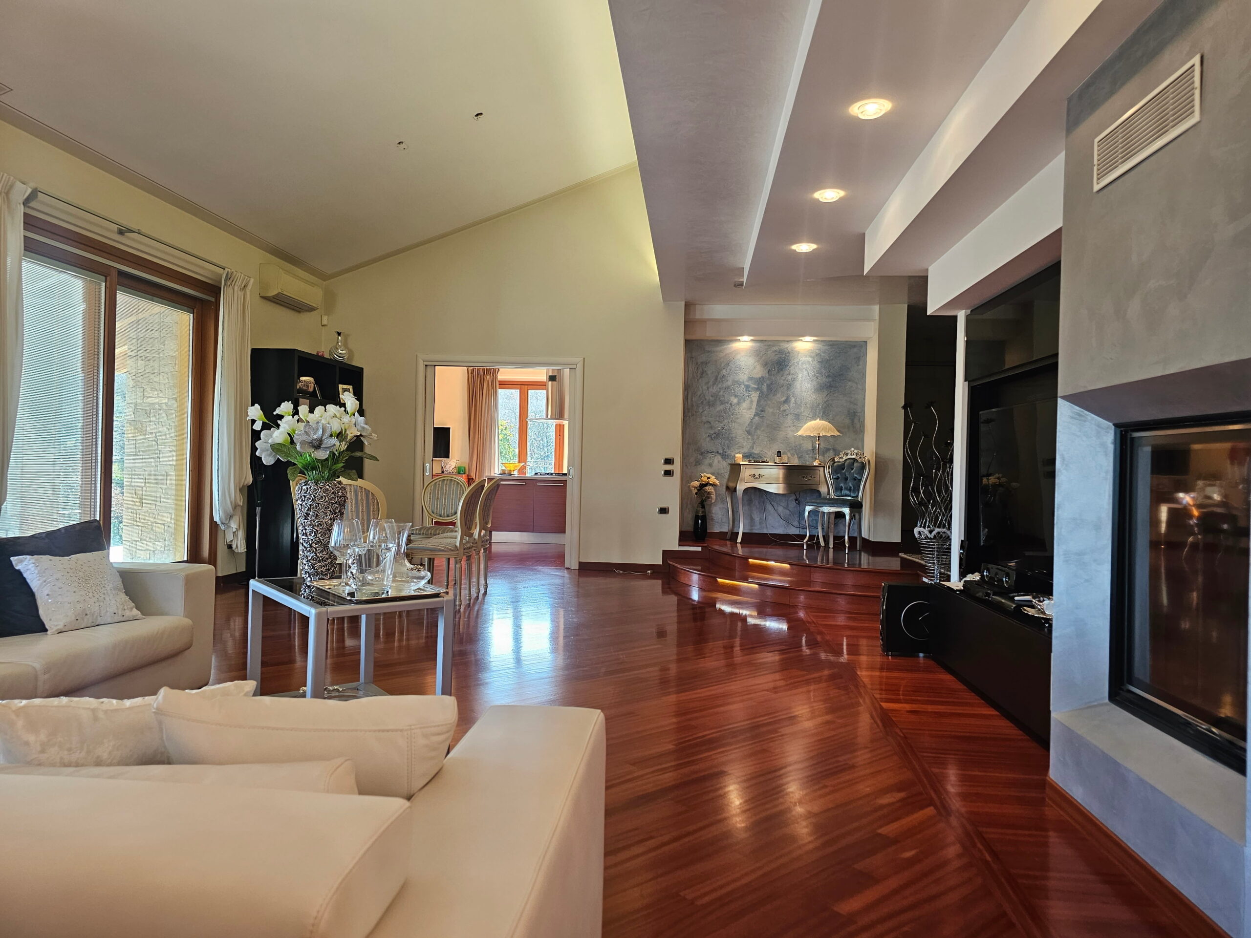 La villa è collegata internamente da una scala di design e ogni ambiente è stato progettato con materiali e soluzioni di assoluto pregio: -Riscaldamento a pavimento -Parquet di alta gamma in tutta la proprietà -Bagni in marmi pregiati e mosaici artistici -Climatizzazione in ogni ambiente -Impianto d’allarme volumetrico e perimetrale con videosorveglianza interna ed esterna -Predisposizione fotovoltaico -Pompa di calore con accumulo acqua calda -Termostati indipendenti per ogni ambiente -Serramenti in legno con doppio vetro, oscuranti elettrici regolabili -Travi a vista in legno lamellare nella zona notte -Controsoffitti nella zona giorno con illuminazione a faretti studiata su misura