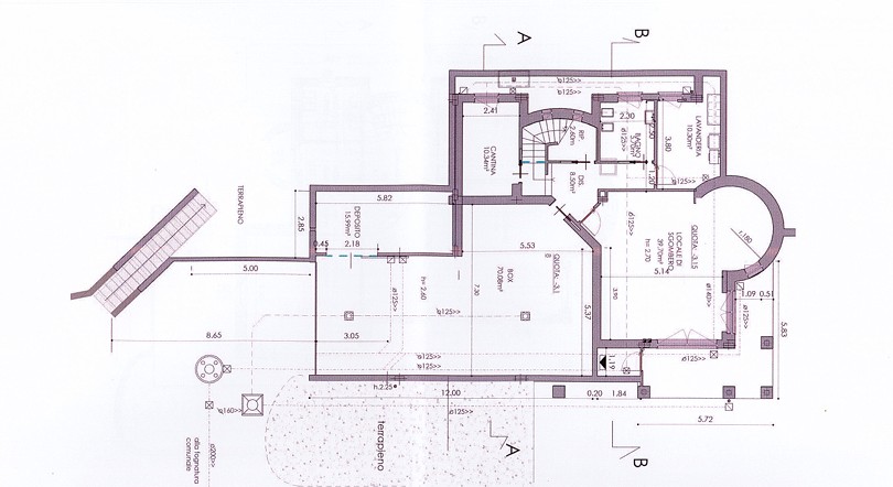 Distribuzione degli spazi. Piano Terra – Area con vivibilità e servizi: -Ampio giardino privato che abbraccia la proprietà -Box auto coperto con capienza fino a 4 vetture -Accogliente taverna con camino, angolo bar e porticato esclusivo -Bagno finestrato con doppio piatto doccia -Lavanderia dedicata -Cantina/dispensa con sistema per la conservazione dei vini e la stagionatura dei salumi -Locali tecnici: caldaia e deposito attrezzature da giardino