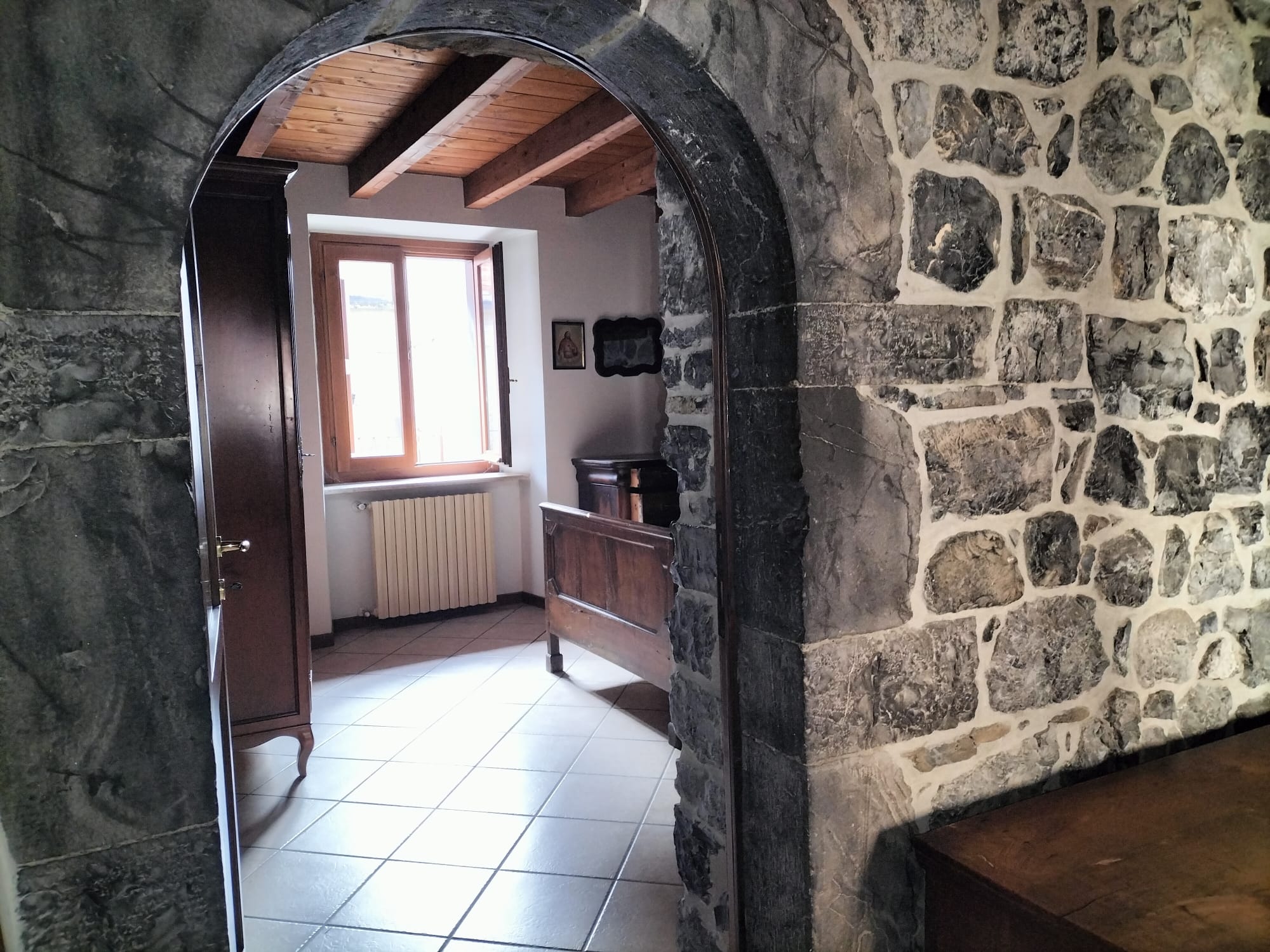 L’immobile è inserito in un contesto tranquillo con ingresso comune a sole tre unità abitative ed è composto da: ingresso cucina abitabile luminoso soggiorno con caratteristica parete e arco in pietra disimpegno due camere da letto bagno.